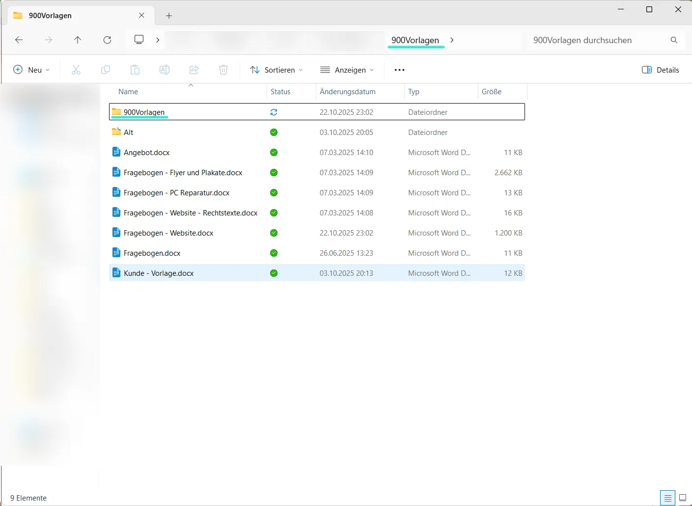 Ein Beispiel: Öffnet man den Ordner „Vorlagen“, legt der Client darin automatisch einen weiteren Ordner namens „Vorlagen“ an – dieser bleibt jedoch leer.