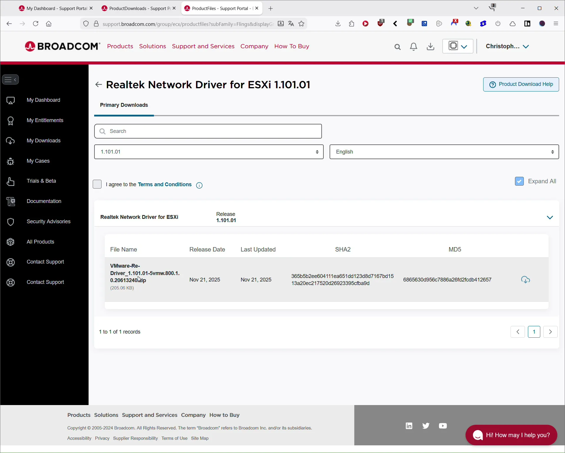 The driver is available in the Broadcom Support Portal under the Flings section. You need a free Broadcom account to download it.