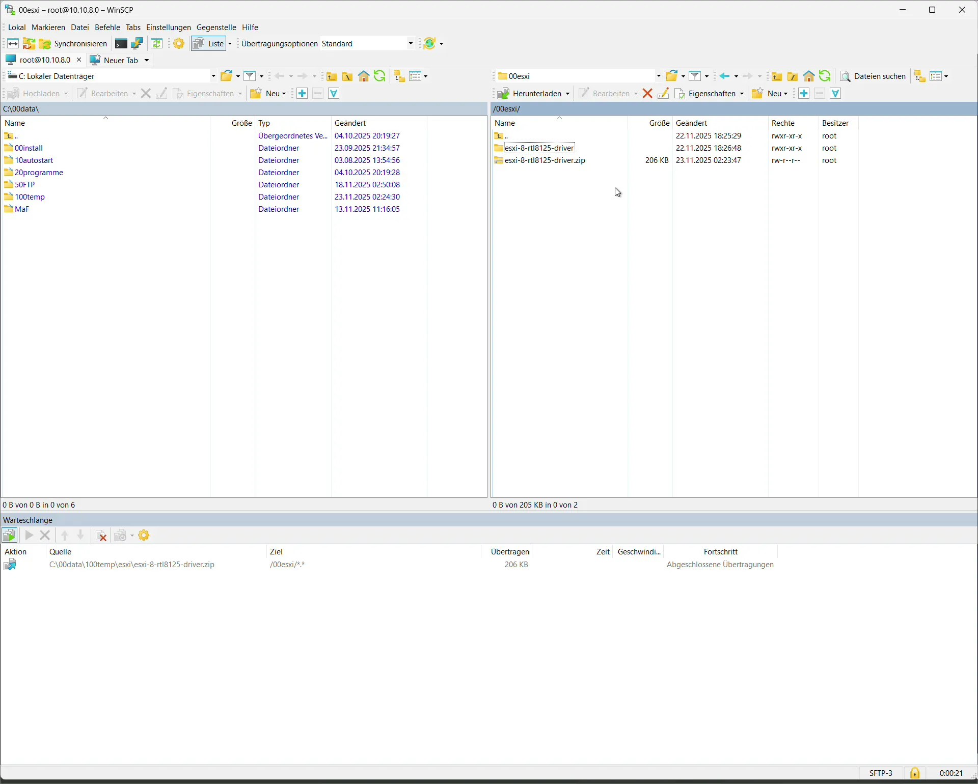 After that create a directory on your ESXi host for driver files. I like to use /00esxi because it is easy to remember and appears at the top of directory listings.