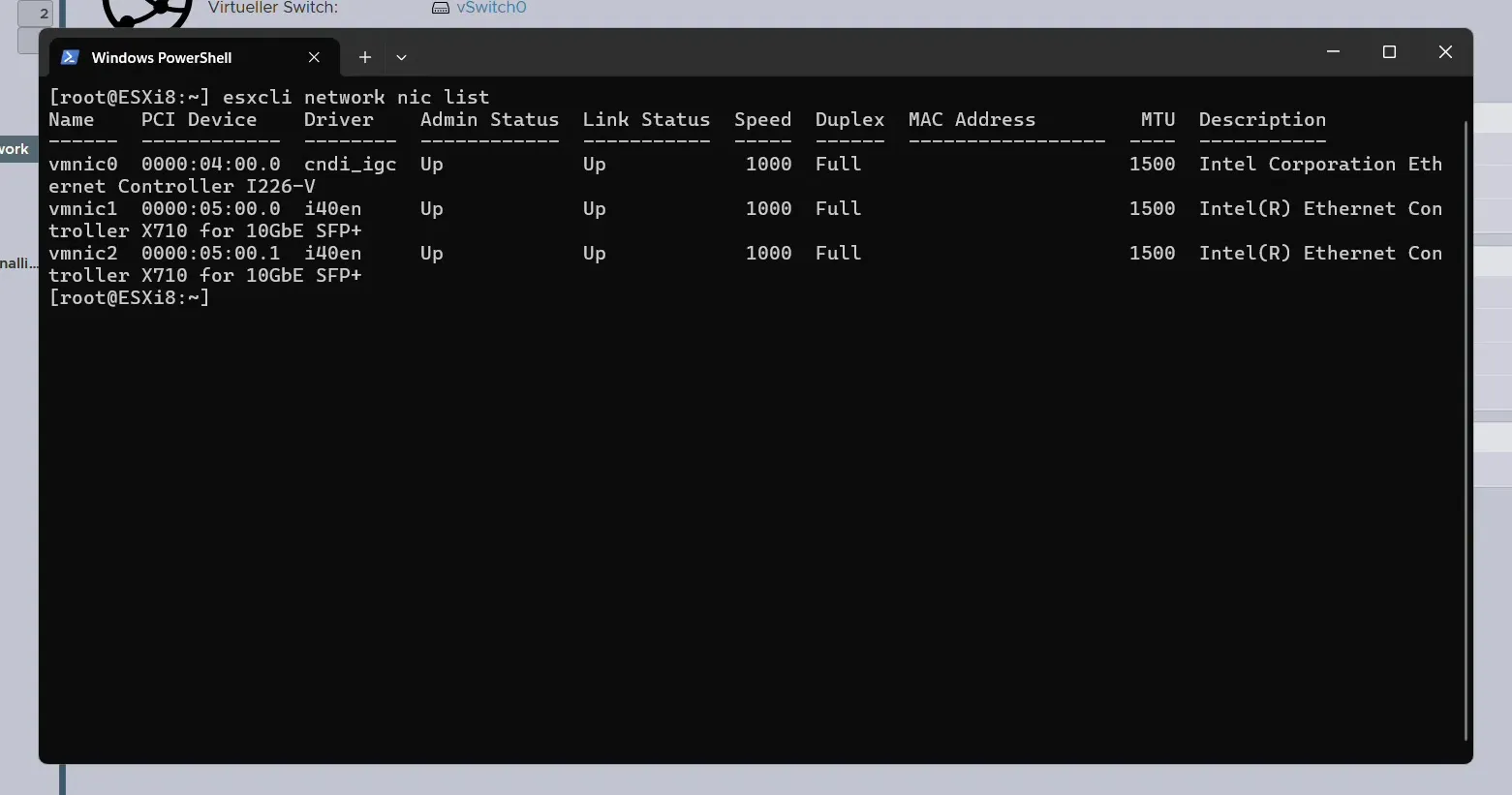 | vmnic0 | 0000:04:00.0 | cndi_igc | 1000 | Intel Corporation Ethernet Controller I226-V |